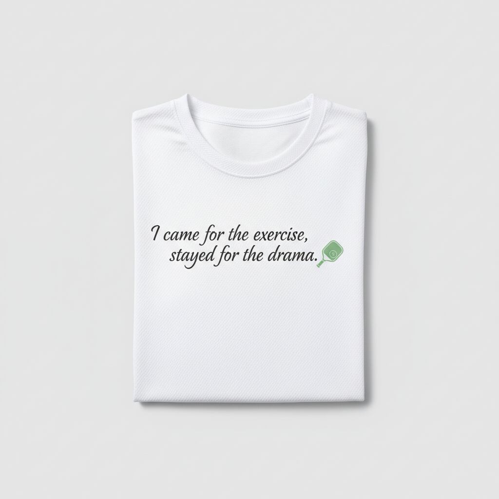 運動のつもりで始めたのに、気づいたらコート上のドラマに夢中。ピックルボールの社交性を表現。ポリエステル100% 吸水速乾ドライ素材。